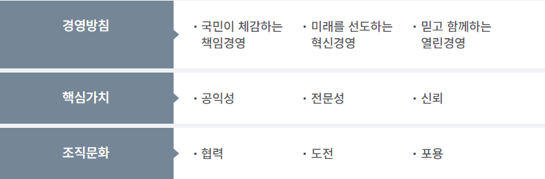 - 핵심가치: 고객 최우선, 공정, 혁신, 전문성, 사회적 가치