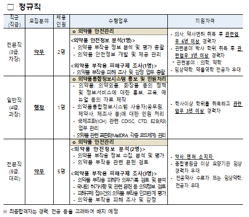 - 의약품 안전 정보 관리: 의약품 관련 안전 정보 수집, 분석 및 제공