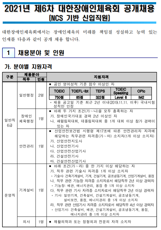 대한장애인체육회 채용공고, 자소서 쓰는법