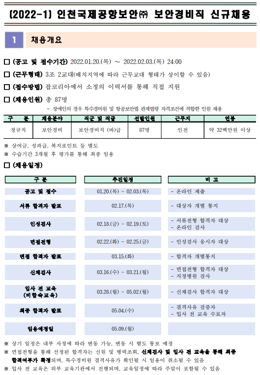 인천국제공항보안 채용 정보, 자소서 문항 분석, 자기소개서 합격 후기